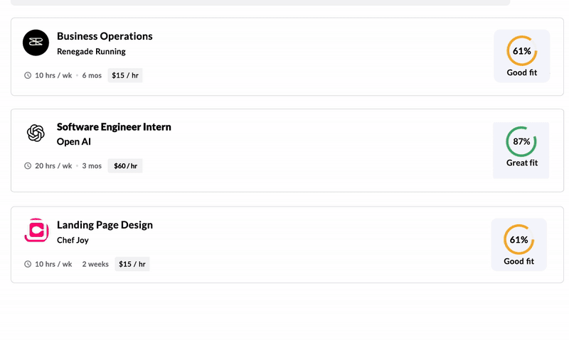 Folio AI will design projects that should a few hours, according to your skill level and target role. You can go complete projects at your own pace.
